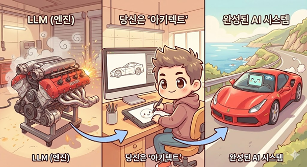 자동차를 생각해 봅시다. 아무리 자동차 엔진(LLM)이 강력해도, 그 엔진을 얹을 섀시나 조향장치, 그리고 어디로 달려야 할지 알려주는 내비게이션이 없다면 그것은 그저 시끄러운 고철 덩어리에 불과합니다.