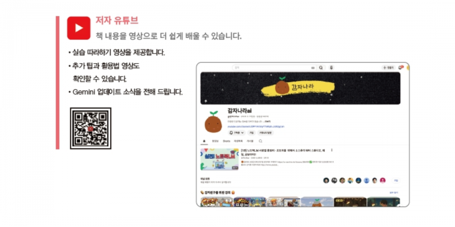 안녕하세요, 저는 2013년부터 '오씨아줌마'라는 브랜드로 온라인 마케팅 컨설팅과 교육을 해온 오종현입니다. 유튜브 채널 '감자나라ai'와 '오씨네동영상창고'를 운영하면서 AI 활용법과 마케팅 콘텐츠 제작 강의를 이어가고 있고요. 이번에는 강의를 넘어 책으로 여러분을 찾아왔습니다. 『5분 제미나이』와 『엑셀 대신 챗GPT』, 두 권을 동시에요.