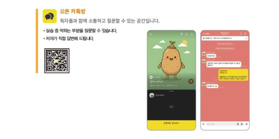 그리고 한 가지 더. 제 캐릭터 "감자"는 전문 일러스트레이터의 작품이 아닙니다. 딸이 직접 그려준 그림입니다. 그 캐릭터가 이번에 처음으로 출판물에 실렸는데, 딸이 얼마나 자랑스러워했는지 모릅니다. 저도 그 페이지를 볼 때마다 괜히 뭉클해집니다. 어쩌면 이 책에서 제가 가장 아끼는 부분은 내용이 아니라, 그 조그만 감자 캐릭터일지도 모르겠습니다.