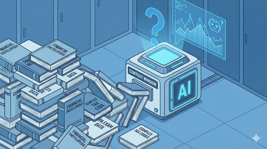 LLM은 금융 전문가가 아니므로 전문적인 금융 용어를 이해하고 처리하는 데 어려움을 겪습니다. 이를 보완하기 위해 용어 정의를 프롬프트에 추가해도 개선 폭은 제한적이며, 원하는 수준에 도달하려면 사실상 CPA 시험 범위 전체를 컨텍스트 윈도 안에 넣어야 하는 상황이 됩니다.