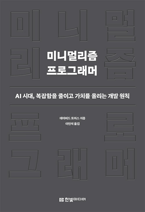 AI가 코드를 대신 작성하는 시대입니다. 하지만 아이러니하게도 소프트웨어는 그 어느 때보다 비대하고 복잡해졌습니다. ‘더 빠르게, 더 많이’를 외치는 세상에서, 전설적인 명저 『실용주의 프로그래머』의 저자 데이비드 토머스는 신작 『미니멀리즘 프로그래머』를 통해 개발자가 나아가야 할 정반대의 길, '단순함'을 제시합니다.
