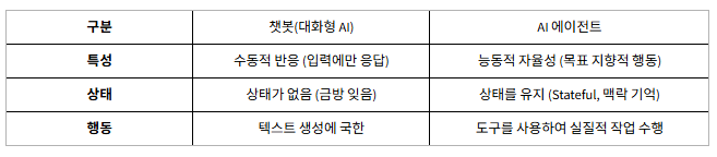 이는 챗봇이 ‘규칙 하나’만 보고 판단하기 때문입니다. 하지만 우리가 원하는 에이전트는 다릅니다.