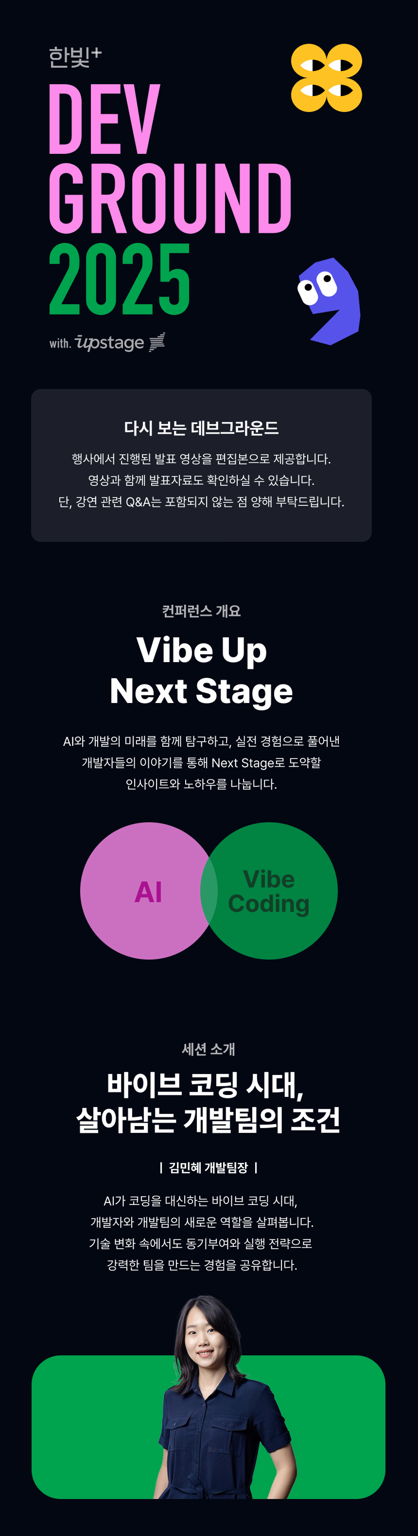 크래프톤, 다음&카카오에서 게임 개발부터 광고 도메인의 대용량 트래픽 처리까지 개발자로서 기본기를 쌓았고, 스타트업 공동 창업과 Meta 해외 취업을 통해 경험의 스펙트럼을 확장했습니다. ChatGPT 출시 즈음 합류한 응용 AI 스타트업에서 AI 혁명을 직접 경험한 후, 개발팀이 없던 지금의 회사에 합류해 AI 시대에 최적화된 개발팀을 바닥부터 구축하며, 변화하는 시대에 맞는 새로운 개발 문화와 시스템을 만들어가고 있습니다.