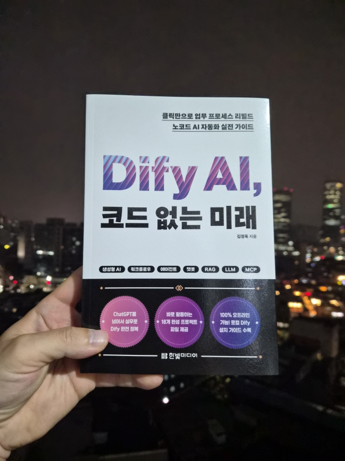 요즘 AI 관련 도구 책을 읽다 보면 비슷한 느낌을 받을 때가 많다. “이 기능은 무엇이고, 이 버튼을 누르면 무엇이 된다.” 『DIFY AI, 코드 없는 미래』도 처음엔 그런 책일 거라 생각했다.