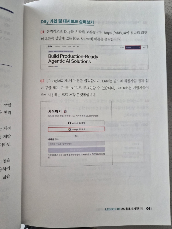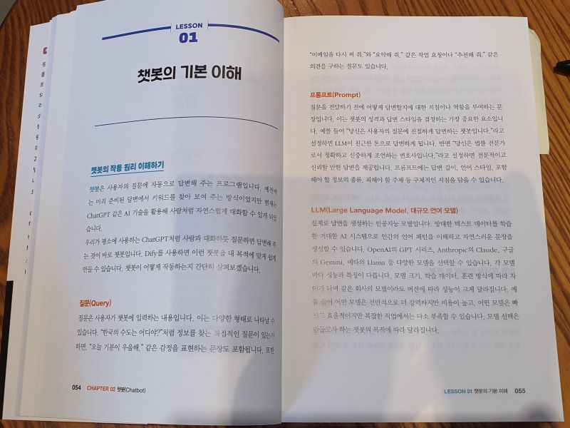 Dify는 워낙 많은 AI 설루션들을 연결해서 쓸 수 있기 때문에, 약간의 학습이 필요한 상황인데요. 이런 류의 도구는 대부분 실습을 해보면 저절로 학습이 되는 정도라서 실습이 중요하기 때문에 저자가 책을 구성한 방식이 매우 적절한 것 같습니다.