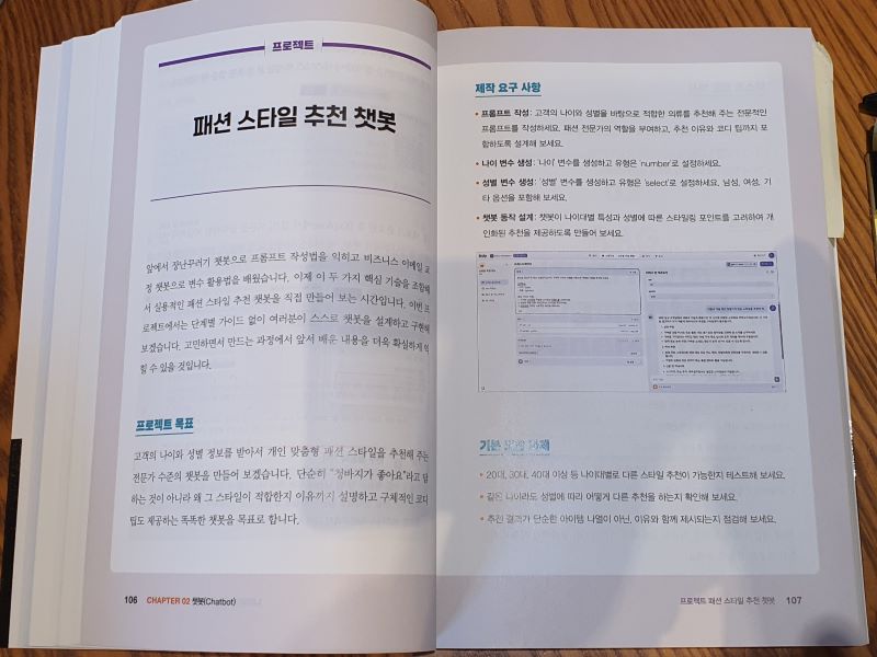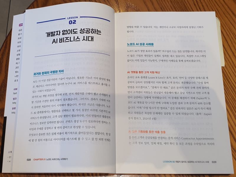 그런 내게 이 책은 상당히 반가운 해답이었다. 코딩 한 줄 몰라도 AI 앱을 만들 수 있다는 말이 과장처럼 들릴 수도 있지만, 적어도 '어떤 식으로 접근하면 되는지'에 대한 감을 잡을 수 있었다. 단순히 챗GPT와 대화만 하는 게 아니라, 내가 원하는 기능을 가진 AI 서비스를 직접 설계하고 운영할 수 있다는 게 신선했다.