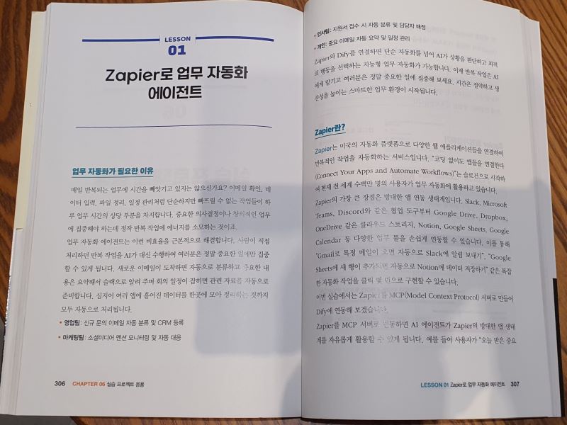 그 외에도 Zapier와의 연동을 통해 플랫폼 구글, 슬랙 등 대세 플랫폼과의 연동은 물론 AI가 상황을 판단하고 최적의 행동을 선택하는 지능형 자동화에 이르기까지 생태계 전반을 엮어주는 책이기에 단순히 Dify를 넘어 빠르게 AI 트렌드 변화를 파악하기에 제 격이다.