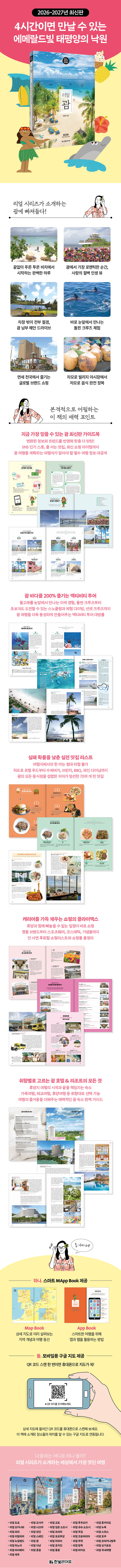 에메랄드빛 바다와 눈부신 백사장, 차창 밖으로 펼쳐지는 남부 해안의 절경, 돌고래를 만나는 바다 위 액티비티와 하루를 마무리하는 선셋의 순간까지. 완벽한 휴양지 여행을 꿈꾼다면 떠오르는 곳, 괌의 매력을 더욱 정확하고 깊이 있게 담아낸 《리얼 괌》이 최신 개정판으로 돌아왔다. 이번 개정판은 빠르게 변화하는 괌의 최신 흐름을 반영해 한층 더 탄탄해졌다. SNS에서 화제가 된 인기 스폿과 새롭게 주목받는 레스토랑, 꾸준히 사랑받는 로컬 맛집, 그리고 쇼핑 리스트까지 다시 점검해 업데이트했다. 또, 여행자들이 실제로 궁금해하는 운영 정보와 예약 팁, 가격 정보 등을 꼼꼼하게 정리해 실용성을 높였다. 휴양지 여행에서 빼놓을 수 없는 숙소 정보 역시 더욱 강화했다. 가족여행, 허니문, 가성비 여행 등 목적에 맞춰 선택할 수 있도록 호텔과 리조트를 정리하고, 위치와 부대시설, 장단점을 한눈에 파악할 수 있게 구성했다. 최신 정보와 실전 팁으로 무장한 《리얼 괌》과 함께라면, 누구나 만족스러운 괌 여행을 완성할 수 있을 것이다.