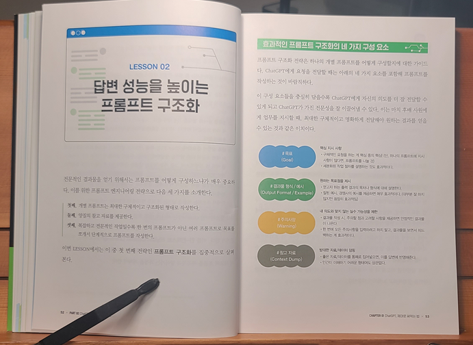 아직 챗GPT에 대한 공부를 하지 않은 사람이라면 이 도서만 봐도 무방할 정도로 정말 모든 것이 종합적으로 담겨있는 책이다. 예전부터 많이 다뤄오던 기본적인 프롬프트 엔지니어링에 대한 내용부터 시작하여, 각종 노코드 자동화 기법까지 두루두루 유용한 지식들이 담겨 있었다.