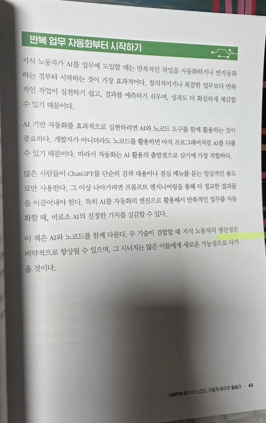 진정한 활용은 이 책처럼 AI를 업무 자동화의 핵심 엔진으로 만드는 것이죠.