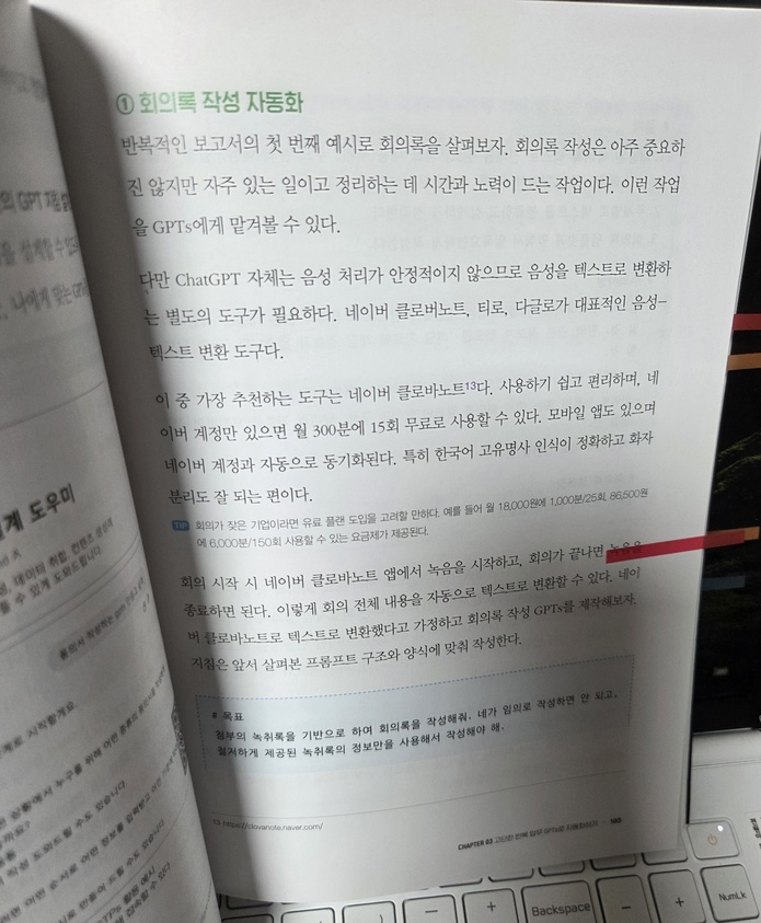 책의 지침을 따라 "회의록 정리 GPT"를 만들어봤습니다.