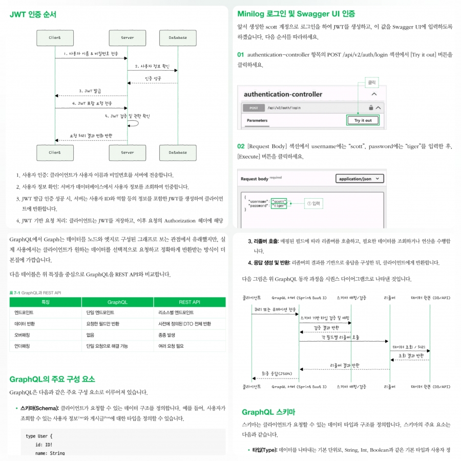 "자바 개발자가 배워야 할 프레임워크", "스프링 부트의 데이터베이스 연동", "GraphQL 도입 시점" 같은 실무적인 고민들을 다뤄주었어요.