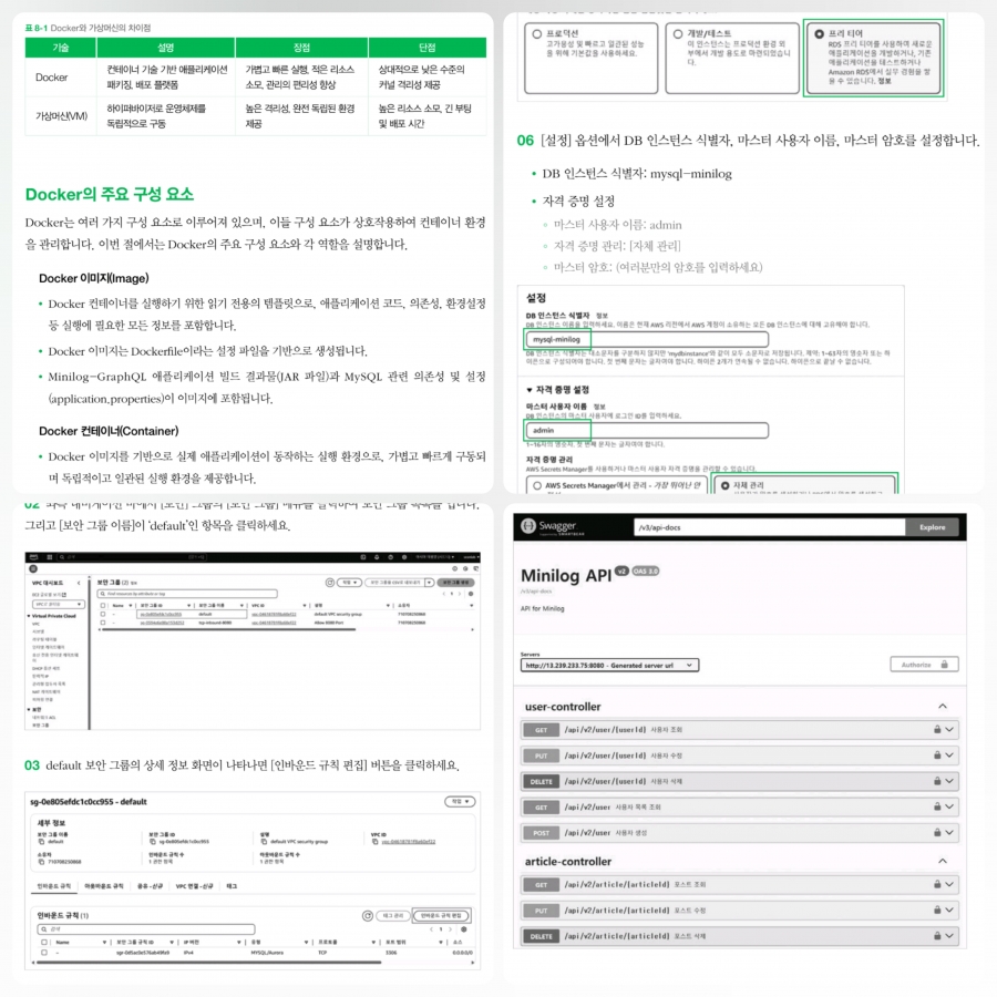 책의 흐름은 이렇습니다. 먼저 개발 환경(WSL2, Docker, IntelliJ, JDK 21, Gradle)을 세팅하고, 가장 단순한 인메모리 To-Do API부터 시작해요. 이후 JPA와 MySQL을 연동하고, 마이크로블로그라는 좀 더 복잡한 프로젝트로 확장합니다. 여기에 JWT 인증(스프링 시큐리티), GraphQL 지원을 추가하고, 마지막에는 Docker로 패키징해서 AWS에 배포하는 것까지 다룹니다.