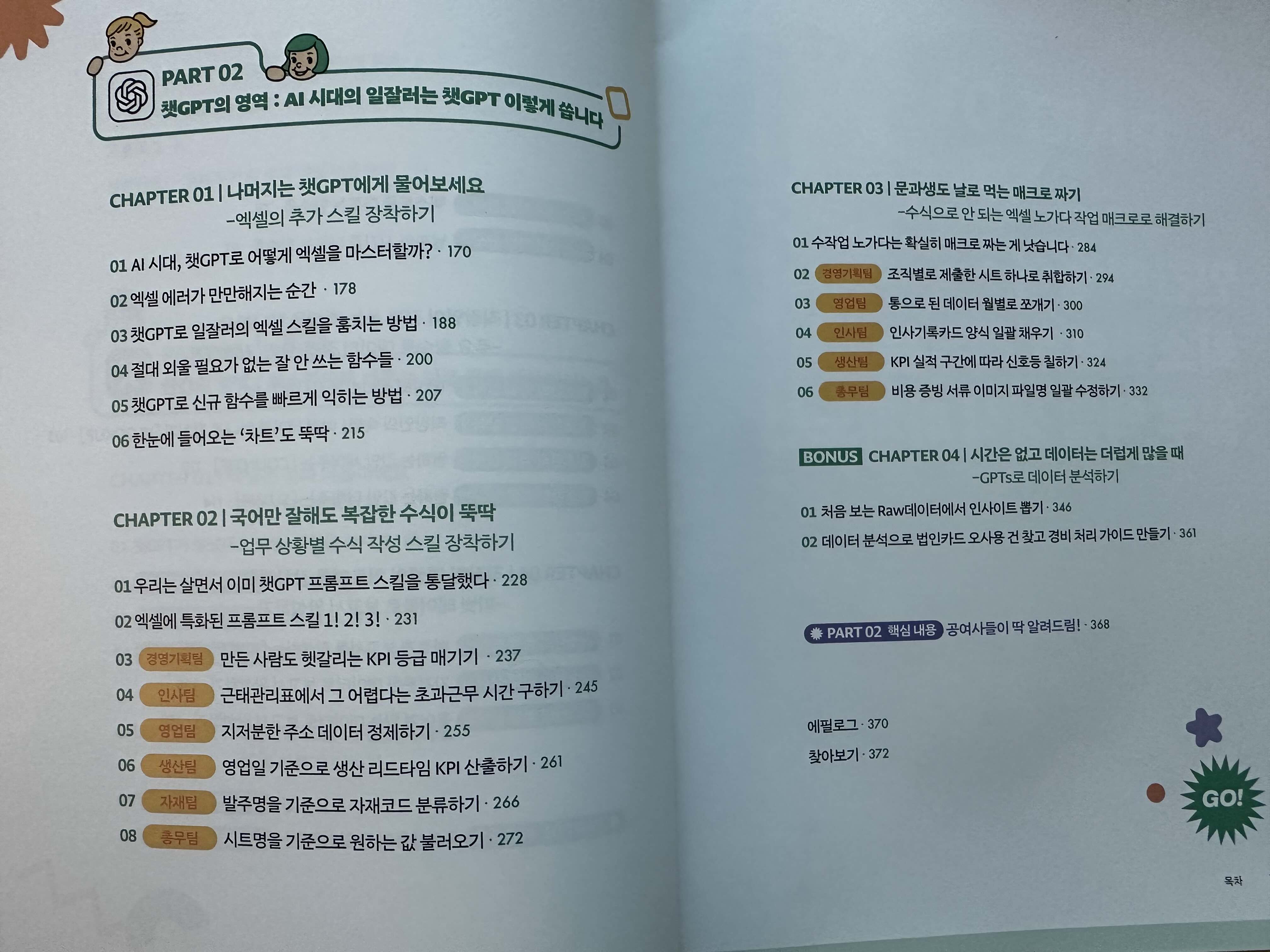 PART 02에서는 엑셀의 복잡한 문제들을 챗GPT를 활용하여 효율적으로 해결하는 방법을 배울 수 있다. 엑셀을 활용하는 데 있어 복잡한 수식이나 반복적인 작업은 필수적이지만 시간이 많이 걸리고 실수가 발생할 수 있다. 챗GPT는 이런 작업들을 자동화하거나 복잡한 계산을 단순화해주는 도구로, 엑셀을 사용하는 업무에서 강력한 도우미가 된다.