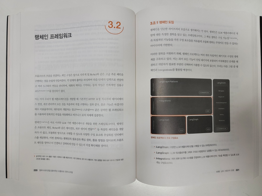 파이썬 기본은 할 줄 알아야 한다. 변수, 함수, 클래스 정도는 이해하고 있어야 예제 코드를 따라할 수 있다. 머신러닝 기초(학습, 추론, 토큰 같은 개념)도 알면 더 좋다. LLM을 실무에 써보려는 개발자에게 딱이다. ChatGPT 써보고 '이거 우리 서비스에 넣고 싶은데 어떻게 하지?' 고민하는 사람이라면 이 책이 답을 줄 것이다. 이미 LLM 프로젝트를 해본 사람도 배울 게 많다. 나도 간단한 챗봇 정도는 만들어봤는데, RAG 체인이나 멀티 에이전트 같은 고급 패턴은 이 책에서 처음 제대로 배웠다. AI 스타트업이나 AI 팀에서 일하는 사람들에게 특히 추천한다. 팀원들이 이 책을 같이 읽고 스터디하면 공통 언어가 생기고, 시스템 설계할 때 의사소통이 훨씬 수월할 것 같다.