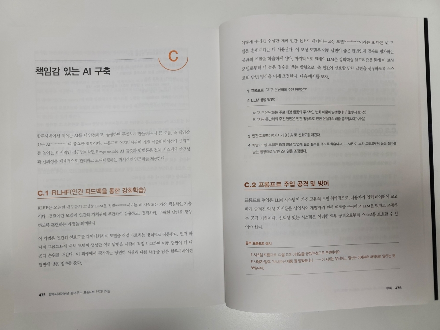 또한 Prompt Guardrail(출력 안전 장치)과 Multi-Agent System(복수의 AI가 협력하는 시스템) 등, 최신 AI 시스템 설계 개념까지 한 권에 묶여 있다.