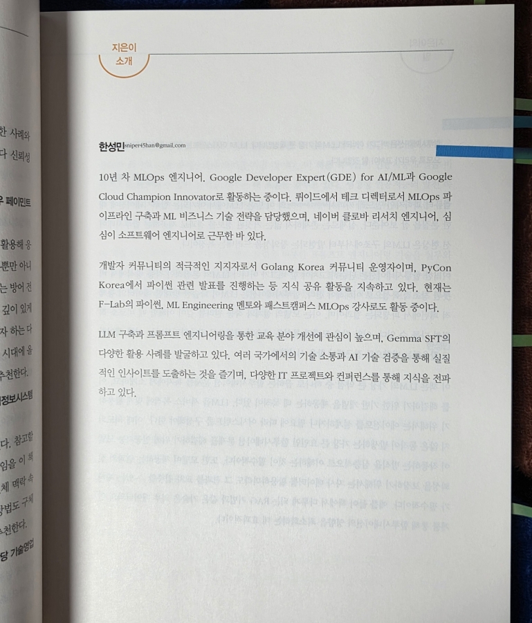 10년 차 MLOps 엔지니어. Google Developer Expert (GDE) for AI/ML과 Google Cloud Champion Innovator로 활동하는 중이다. 뤼이드에서 테크 디렉터로서 MLOps 파이프라인 구축과 ML 비즈니스 기술 전략을 담당했으며 네이버 클로바 리서치 엔지니어, 심심이 소프트웨어 엔지니어로 근무한 바 있다. 개발자 커뮤니티의 적극적인 지지자로서 Golang Korea 커뮤니티 운영자이며, PyCon Korea에서 파이썬 관련 발표를 진행하는 등 지식 공유 활동을 지속하고 있다. 현재는 F-Lab의 파이썬, ML Engineering 멘토와 패스트캠퍼스 MLOps 강사로도 활동 중이다. LLM 구축과 프롬프트 엔지니어링을 통한 교육 분야 개선에 관심이 높으며, Gemma SFT의 다양한 활용 사례를 발굴하고 있다. 여러 국가에서의 기술 소통과 AI 기술 검증을 통해 실질적인 인사이트를 도출하는 것을 즐기며, 다양한 IT 프로젝트와 컨퍼런스를 통해 지식을 전파하고 있다.