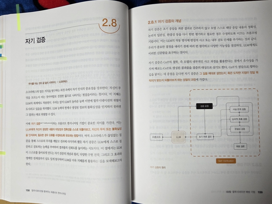 기본적인 퓨샷 프롬프팅 외에도, 이 책은 CoT(Chain of Thought) 와 CoVe(Chain of Verification) 기법을 통해 AI의 사고 과정을 단계별로 이끌어내는 방식을 다룬다.