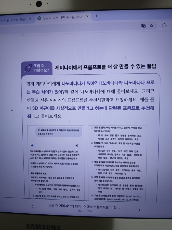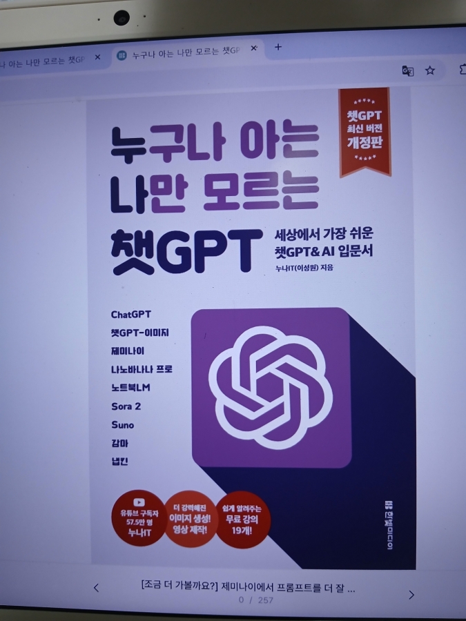 책 제목만 봐서는 챗GPT에 대한 내용만 있을 거라 생각했는데, 막강한 이미지 생성 기능으로 최근에 많이 알려진 제미나이의 나노바나나 프로에 대한 내용도 있다.