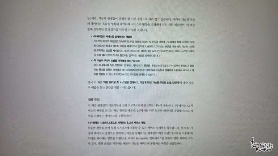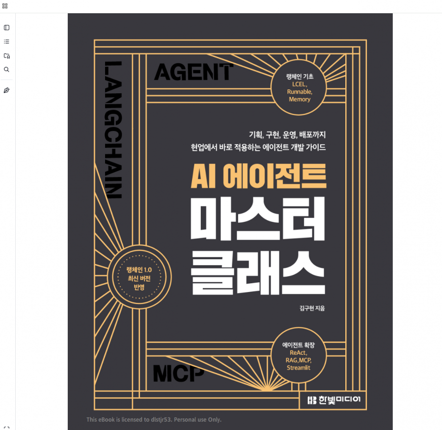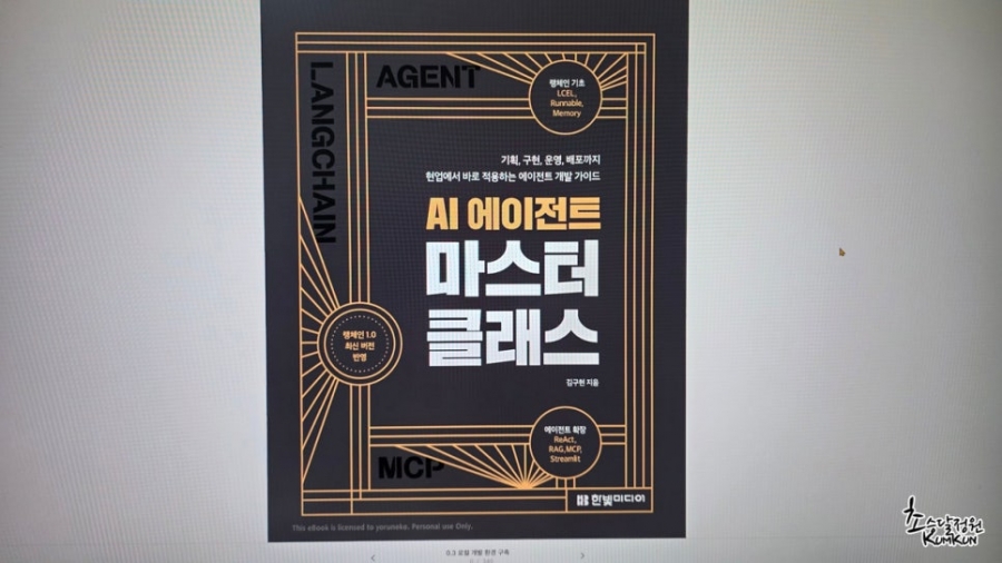 그래서 이번 책은 제게 “에이전트 개발을 시작할 때 필요한 스타터팩(커리큘럼)” 같은 의미였어요.