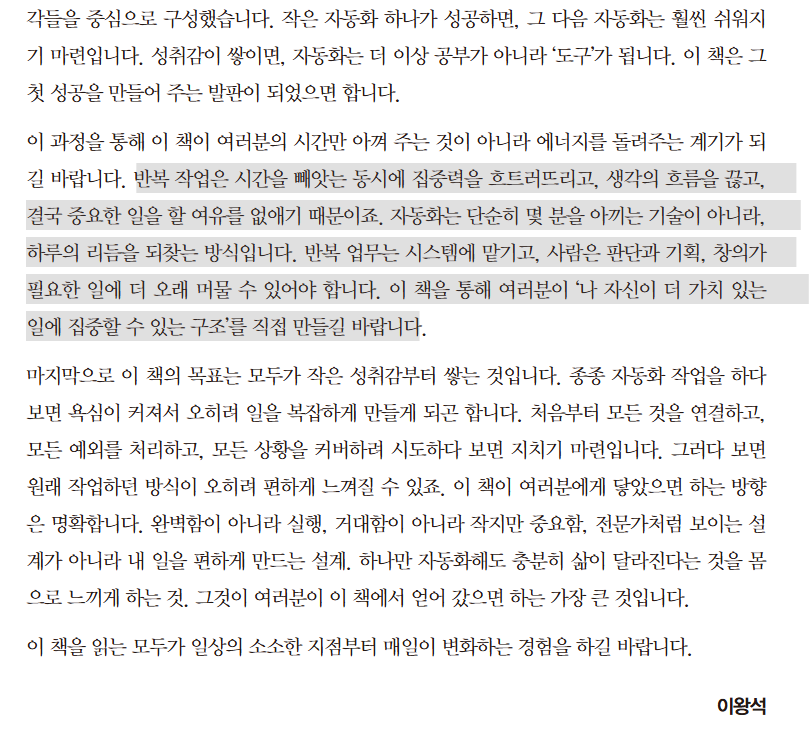 이 책은 자동화에 관심이 있다면 충분히 추천할 만한 책이다.