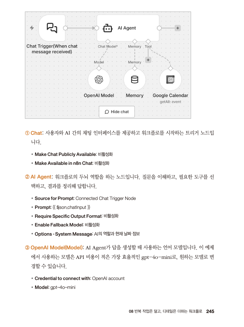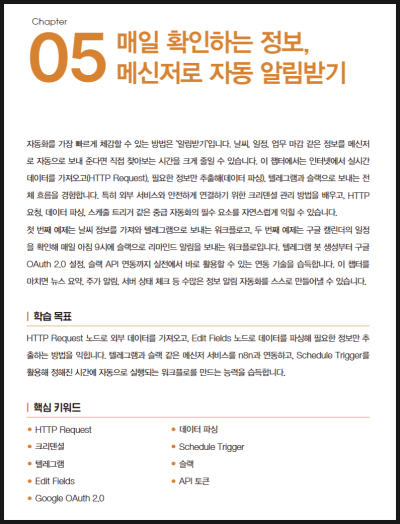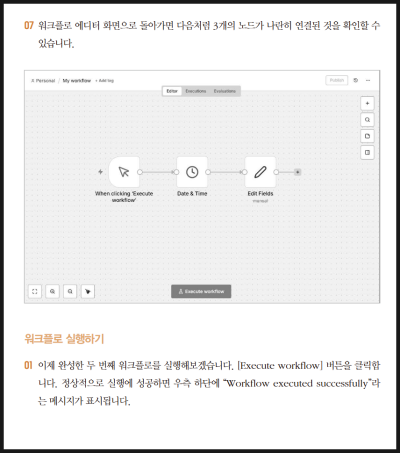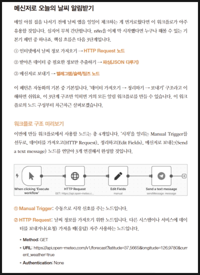 특히 n8n UI가 익숙하지 않은 상태에서는 책에 스크린샷 없이 글로만 설명된 부분을 찾는 데 조금 시간이 걸리기도 했다.