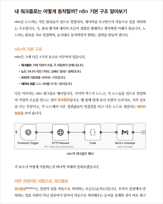 개발자 입장에서도 단순히 n8n 사용법을 배우는 것을 넘어, AI 시대에 필요한 워크플로 설계 감각을 익히는 데 도움이 된다.