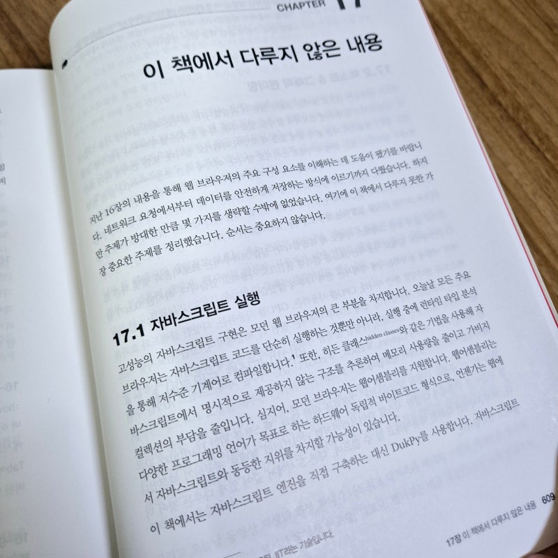그리고 후반부에서 무효화와 점진적 성능의 원칙 등을 다루는 챕터는 특히 흥미로운 대목이었다. 사용자가 입력할 때마다 전체 레이아웃을 다시 계산하면 느릴 수밖에 없다. 이를 해결하기 위해 레이아웃 트리를 캐시하고, 변경된 부분만 다시 계산하는 보호된 필드 기반의 무효화 전략을 이야기하고 있다. 더티 플래그, 종속성 그래프, 멱등성과 결합된 부분 렌더링은 대규모 웹앱 성능 최적화의 근간이 되는 내용이었다. 책의 서두에 브라우저를 만든다는 건 꽤나 복잡한 일이라고 언급한 부분이 있었는데, 이 대목을 보면서 정말 세밀하게 접근해야 될 일이구나 싶은 생각이 들었다.