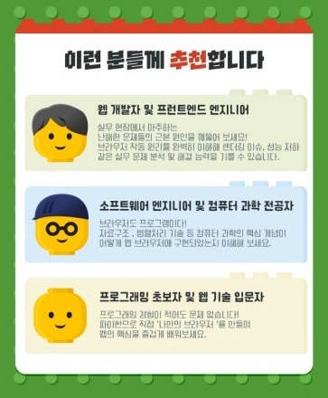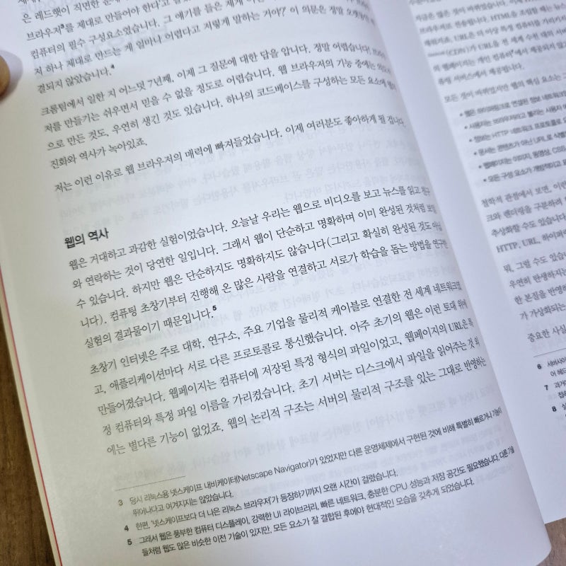 이 책은 특히 웹 프론트엔드 개발자에게 추천하고 싶은 책이다. 앞서 말했던 것처럼 글로서 접하는 지식이 아니라 구현을 통해 체득하는 경험을 할 수 있기 때문이다. 모던 웹 개발 환경에서는 React나 Vue 기반에서 작업을 하고, 이미 구현된 훌륭한 라이브러리 위에서 작업을 하는 경우가 대부분일 텐데, 이 책의 제목처럼 ‘그 밑바닥’을 훑어보는 경험을 직접 하기에 적절한 책이라는 생각이 든다. 단순히 기술 지식을 얻는 것을 넘어, 이제는 없어서는 안 될 웹이라는 거대한 플랫폼이 어떤 철학과 구조 위에 세워져 있는지를 느낄 수 있는 경험이었다.