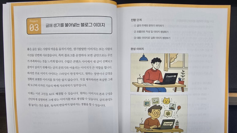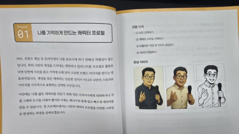 하지만 이 책은 달랐다. 챗GPT라는 친숙한 도구를 기반으로, 단계별 프로젝트를 따라 하기만 해도 결과물이 나온다.