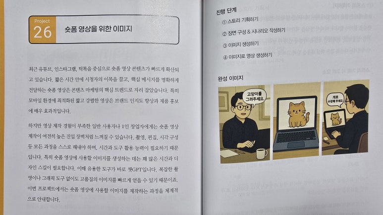26개의 프로젝트로 끝내는 콘텐츠 디자인 with 챗GPT는 바로 이런 어려움을 쉽게 풀어갈 수 있게 도움을 주는 책이라 생각한다.
