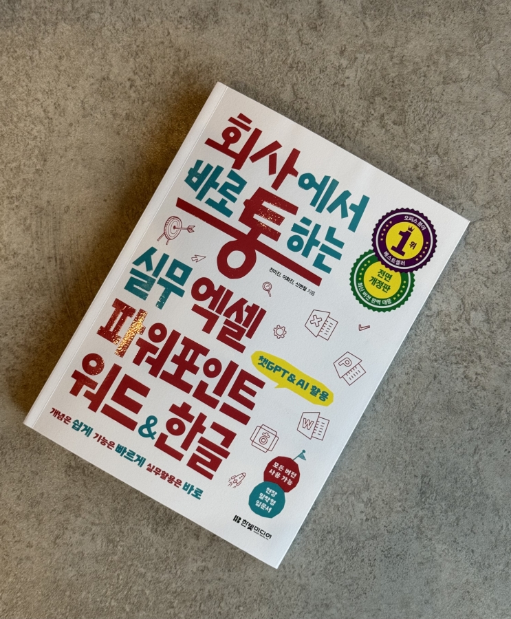 엑셀·파워포인트·워드·한글의 기초부터 실무 활용까지 체계적으로 다룬 책입니다. 특히 ChatGPT와 같은 AI 도구를 활용한 문서 자동화·효율화 방법이 포함되어 있어, 단순 기능 설명을 넘어 최신 업무 환경에 맞는 실질적인 가이드를 제공합니다.