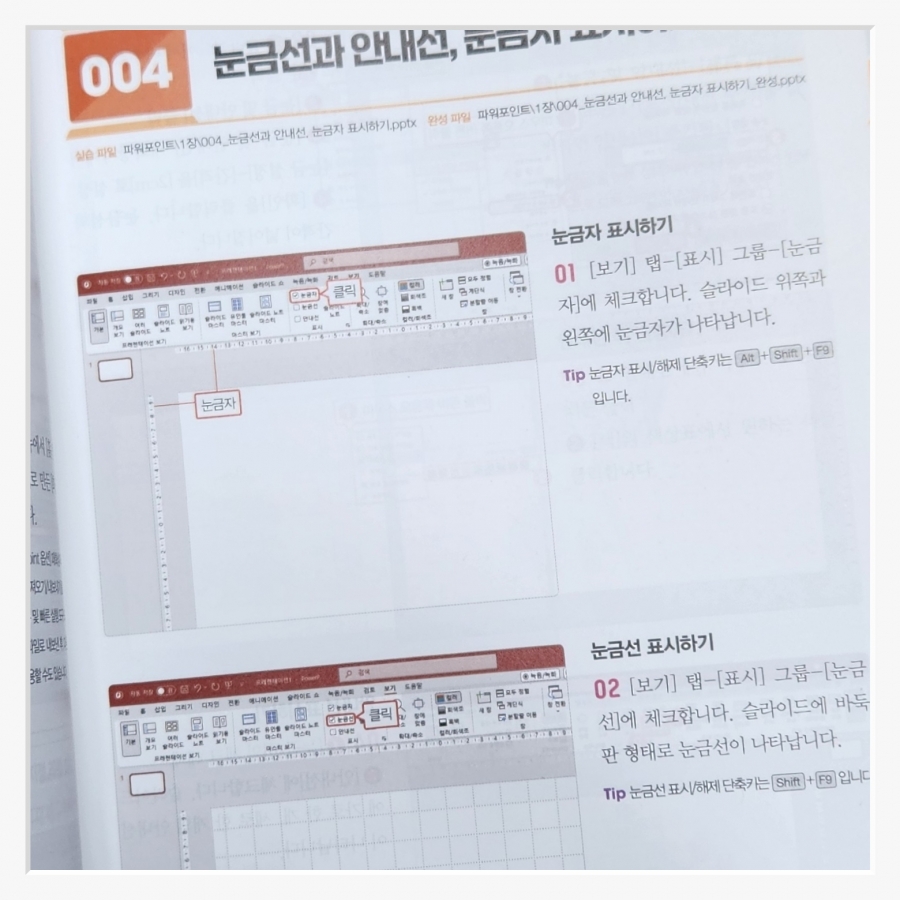 003 화면 구성 요소 눈금선, 리본 메뉴 보이기/숨기기