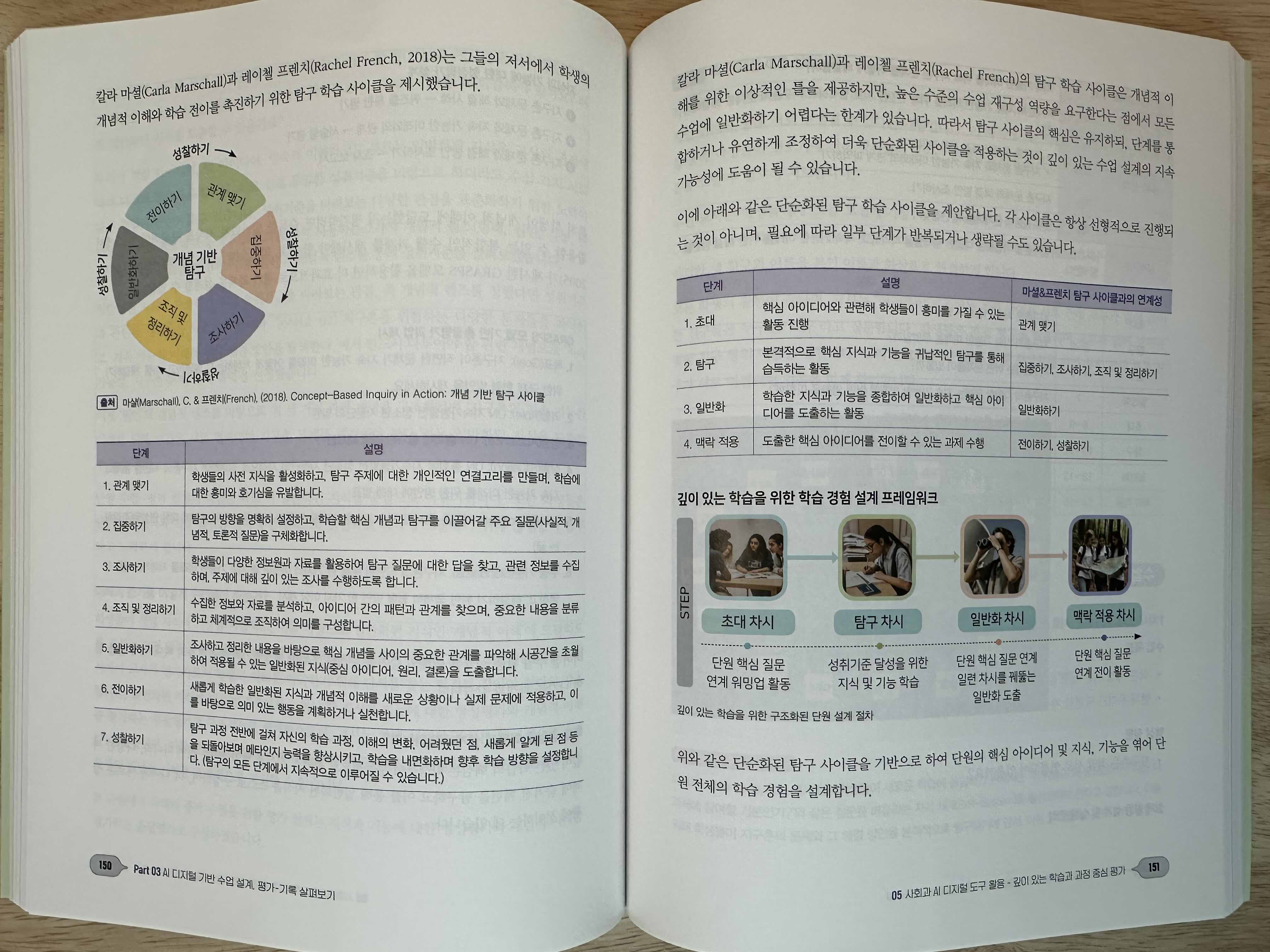 Part 01은 2022 개정 교육과정의 배경과 변화, 그리고 ‘깊이 있는 학습’과 ‘개념 기반 탐구 학습’을 설명한다. 학교 교육의 흐름을 다루지만, 강의나 발표에서도 단순 지식 전달을 넘어 ‘왜’와 ‘어떻게’를 탐구하게 하는 설계가 필요하다는 점을 일깨워준다. 또 ‘아날로그 수업에 왜 디지털 기술이 필요한가’라는 질문은 발표 도구를 선택할 때 고민하는 부분과 맞닿아 있다. 청중이 더 깊이 참여하고 이해하도록 돕는 데 기술을 활용해야 한다는 점이 와닿았다.