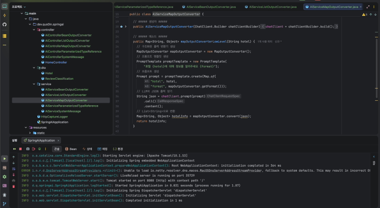 말 그대로였습니다. @Service, @Autowired 정도 써본 스프링 개발자라면 따라가기 어렵지 않았습니다. 파이썬 지식이 필요 없었고, 복잡한 AI 이론보다 '스프링답게 구현하는 법'에 집중된 구성이었습니다.