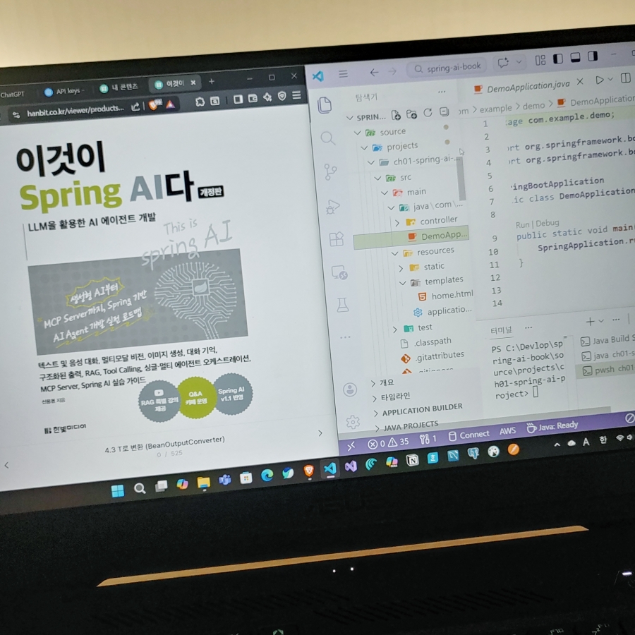 시중에 LangChain 관련 책들은 많이 존재하는데 Spring AI를 전문적으로 다루는 교재가 없었던게 사실이다. 그러다가 만나게 된게 이 '이것이 Spring AI다 (개정판)'이다. 이게 2025년에 나오고 바로 2026년에 개정판으로 한 번 더 나온 버전이다.