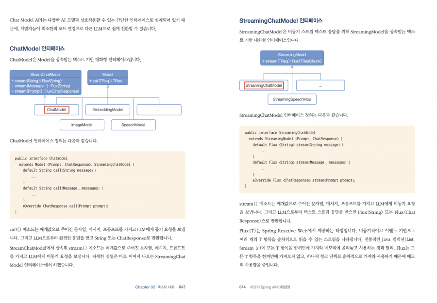 Chapter 02 텍스트 대화 2.1 Chat Model API 2.2 Chat Model API 사용하기 2.3 ChatModel 스트리밍 응답 2.4 ChatClient 사용하기