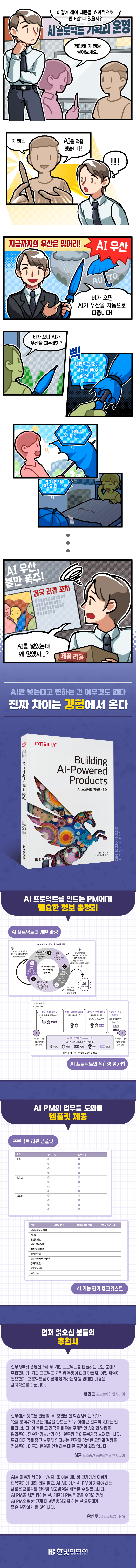 AI는 불과 10년 전에는 상상하지 못한 방식으로 문제를 해결하고 솔루션을 확장할 힘을 제공하며, 디지털 환경과 프로덕트 개발 방식을 급격히 변화시키고 있습니다. 프로덕트 역시 마찬가지입니다. AI 프로덕트는 자율적으로 작동하며 사용자와의 상호작용을 통해 스스로 학습하고 발전해, 계획 수립부터 의사결정, 작업 조율 및 실행, 사용자에게 개인화된 경험 제공까지 다양하고 복잡한 작업을 수행합니다. 그렇기에 앞으로 모든 프로덕트 매니저는 AI 프로덕트 매니저(AI PM)가 될 것입니다. 이 책은 스마트한 전략, 바로 적용할 수 있는 도구, 현장 사례를 담아 복잡한 AI 에이전트와 생성형 AI 프로덕트를 혁신으로 잇는 방법을 담은 가이드입니다. AI PM이 프로덕트에 AI 기술을 활용해 사용자의 문제를 해결하는 방법을 알아보세요. 조직을 이끄는 리더든 PM을 준비하는 사람이든, AI 사전 지식과 무관하게 이 가이드를 통해 AI 프로덕트 라이프사이클의 전 과정을 자신 있게 이끌어 보세요.