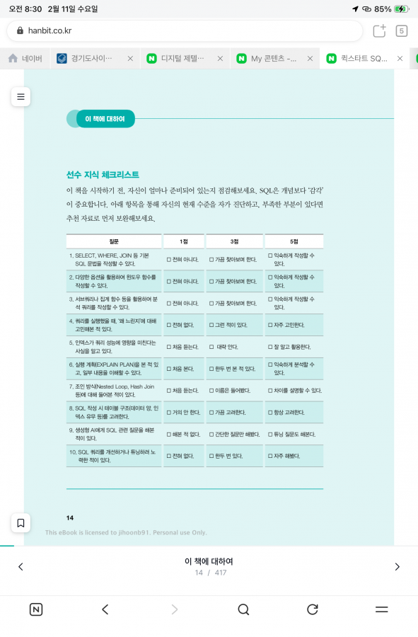 >> “AI가 쿼리는 대신 써줄 수 있지만 쿼리를 ‘이해’하고 ‘최적화’하는 건 여전히 사람의 일입니다. 이 책은 AI를 통해 SQL 실력을 가속화하는 방법을 알려줍니다.” _본문 중에서